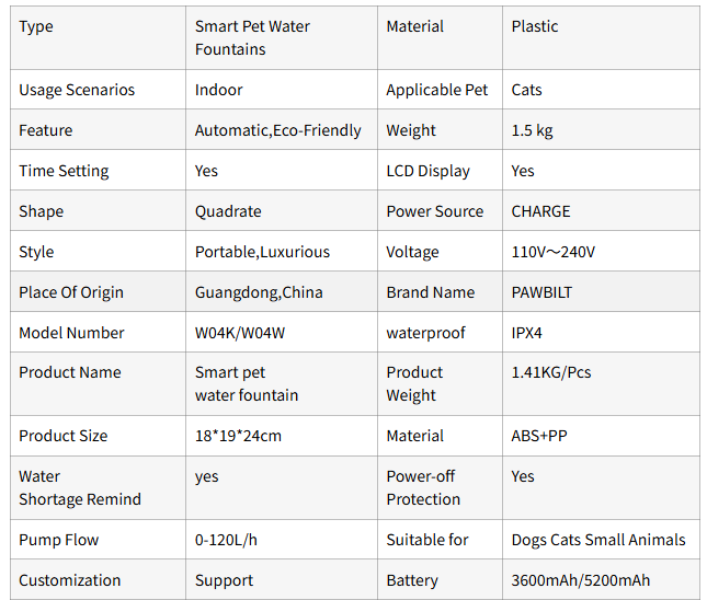 Meet the PAWBILT Automatic Pet Fountain – your ultimate cord-free hydration solution. This advanced automatic fountain combines innovative technology with practical design, featuring a generous 4L capacity and long-lasting battery power. Perfect for multi-pet households, it ensures your pets always have access to fresh, clean water.