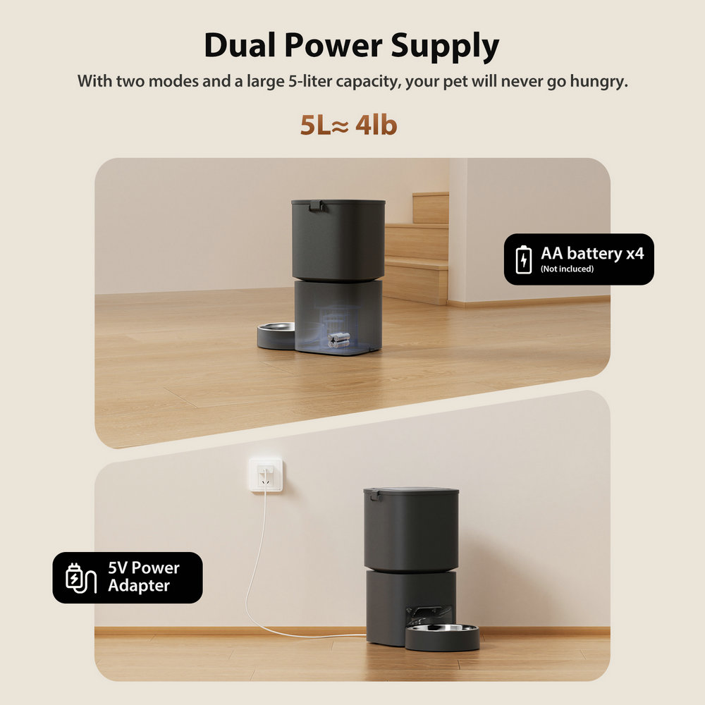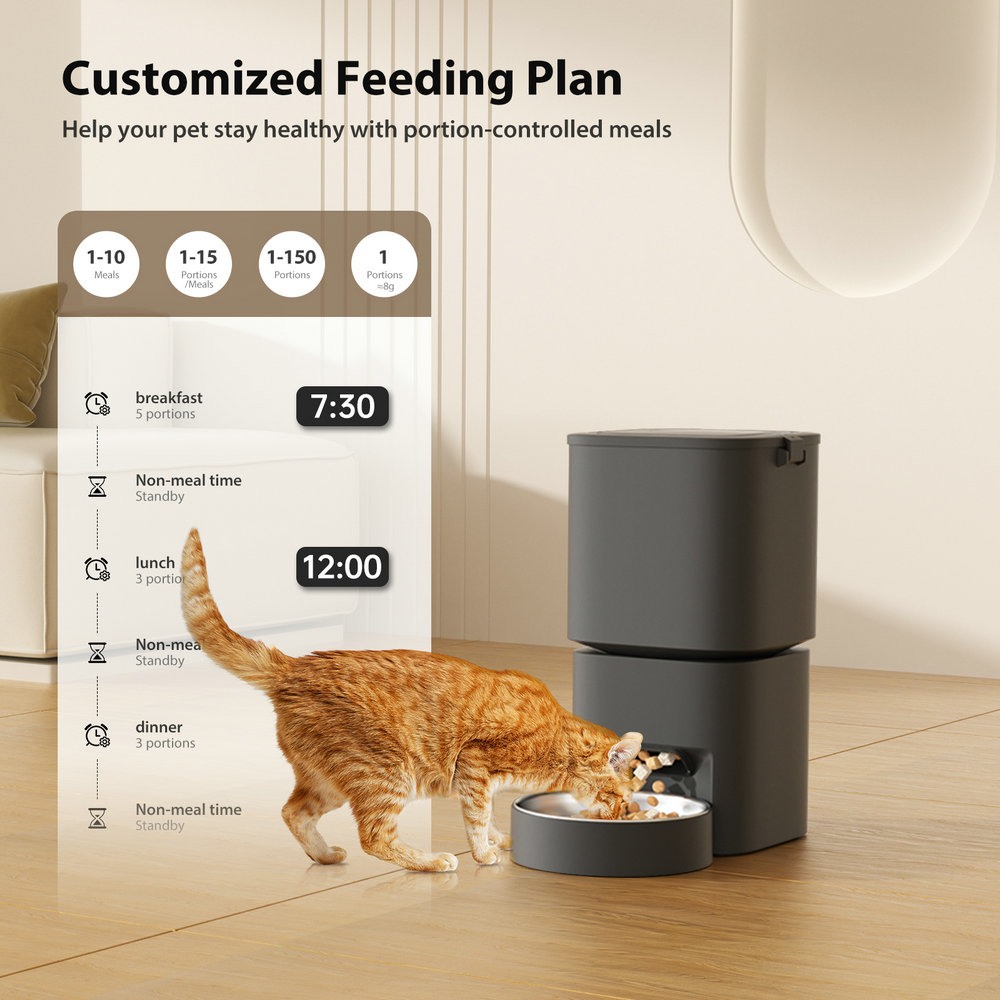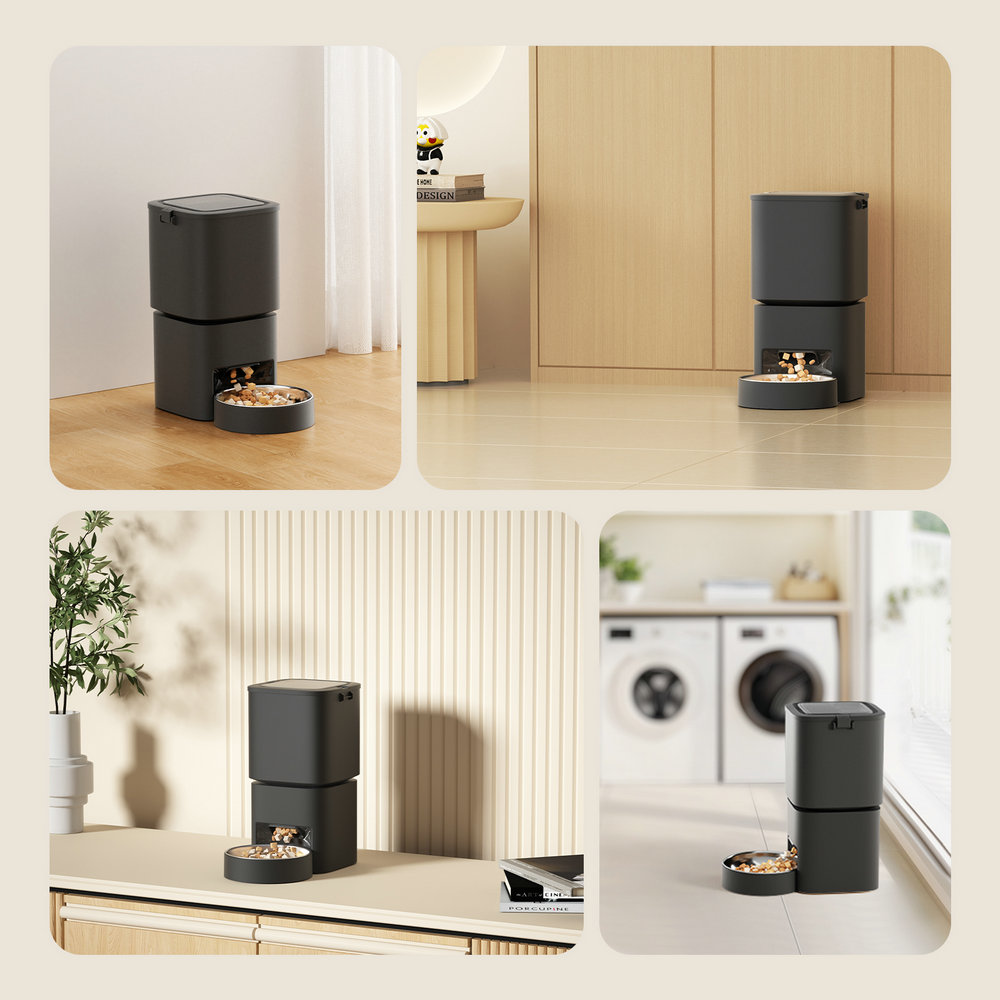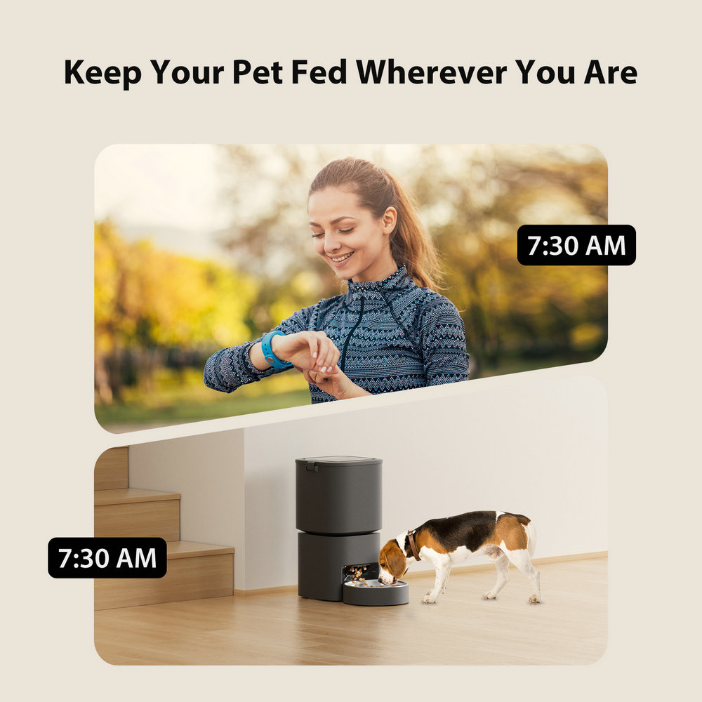 Manage your pet’s feeding schedule with ease through the dedicated mobile application. This automatic pet feeder offers complete customization of portion sizes and feeding times, while the outage-proof reliability with dual power options guarantees continuous operation. The smart monitoring system keeps you informed about feeding status and food levels at all times.