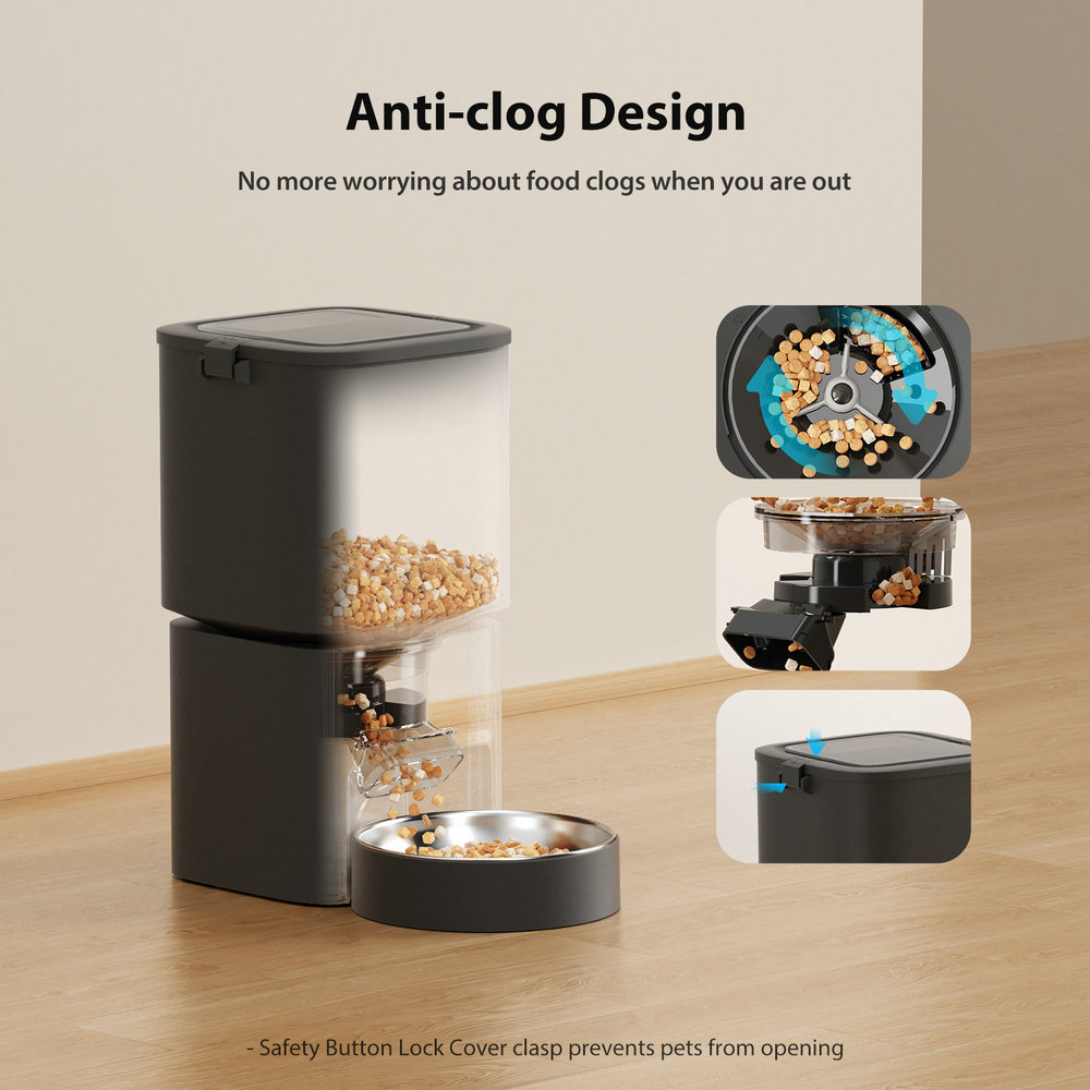 This premium automatic pet feeder features a sophisticated anti-jam design that prevents food blockages and ensures consistent meal distribution. The large 5-liter capacity makes this automatic pet feeder ideal for multi-pet households or extended trips, reducing the need for frequent refills. Every component is designed for durability and reliability, providing peace of mind for pet owners.